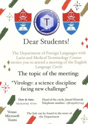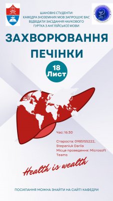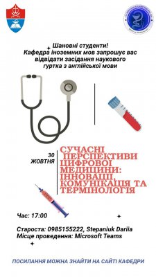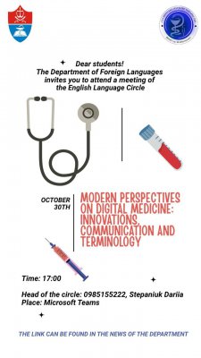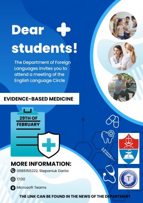Пропонуємо вам відвідати та користуватися інформаційно-освітнім блогом викладача кафедри Ю. М. Остраус, що допоможе опанувати і вдосконалити професійну англійську мову - http://doctor-communication.vn.ua