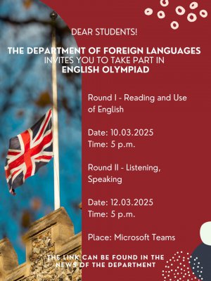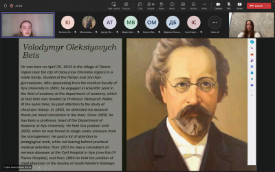 За традицією в рамках проведення щорічних Шекспірівських днів (“Shakespeare’s Event” ) на кафедрі іноземних мов з курсом латинської мови та медичної термінології 30 квітня відбувся захід присвячений 458- річниці з дня народження видатного англійського драматурга, актора та поета Єлизаветинської епохи - У.Шекспіра. Вчені стверджують, що епохи Ренесансу не існувало б як такої без Шекспіра та його творчості. Він подарував світові безсмертні твори, в яких людство ось вже протягом чотирьох століть знаходить найяскравіше відзеркалення. Великий знавець психології, філософії та майстер розкриття характерів, Шекспір з надзвичайною силою показав трагедії і комедії життя. Про нього сказано: "The applause! Delight! The wonder of our stage! He was not of an age, but for all time!” Shakespeare had a greater influence on the development of the whole of world literature than anybody else."