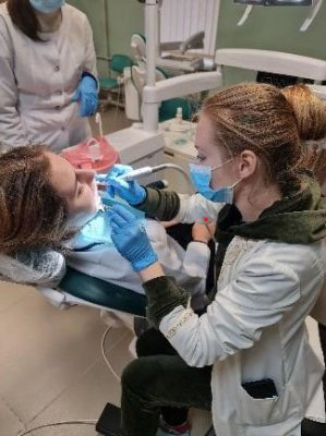 Студенти мають можливість спостерігати за клінічним прийомом, асистувати практикуючим лікарям та разом з викладачем проводити консультування та лікування стоматологічних хворих.