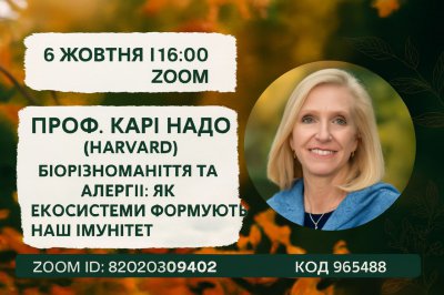Запрошуємо на онлайн-лекцію професорки Гарвардського університету Карі Надо «Втрата біорізноманіття та алергічні захворювання: зв'язок здоров'я екосистем з імунітетом людини»