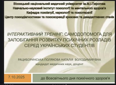 З 6 по 10 жовтня фахівці Науково-навчального інституту психології та ментального здоровʼя ВНМУ провели для студентів і викладачів тиждень заходів, присвячених проблематіці Всесвітнього дня психічного здоровʼя.